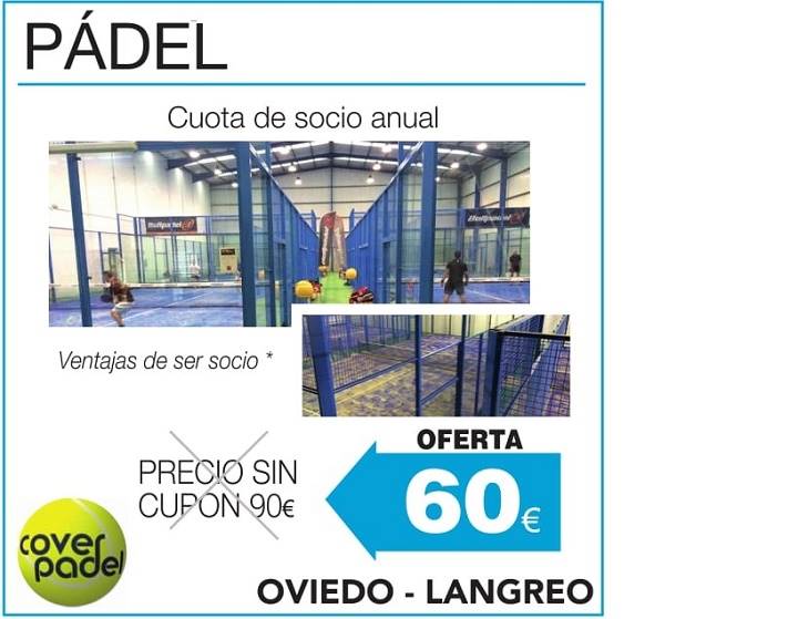 Oferta Cuota Socio LNE 24/09/2016 Promoción especial cuota de socio anual en Cover Padel. Compra La Nueva España este domingo 18 de Septiembre, recorta el cupón y obtén un 33% de descuento. Consulta las condiciones especiales de ser socio en el propio cupón