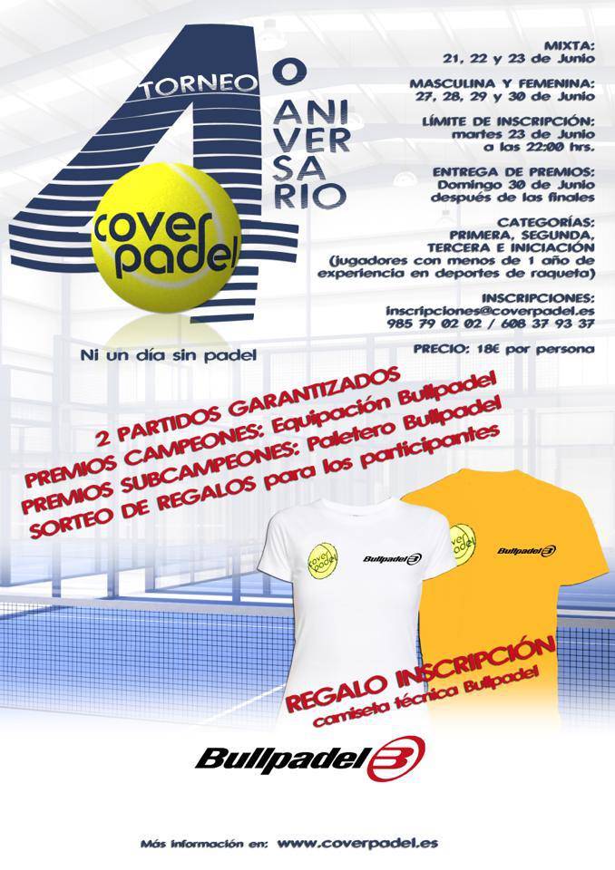 inscripciones.oviedo@coverpadel.es indicando nombre y apellidos,