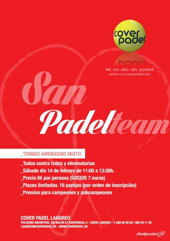 Feliz San PadelTeam !!! (Mixto) 10/02/2015 Feliz San PadelTeam !!! Llama al club y apúntate antes del viernes a las 15 h Este sábado te esperamos en Cover Padel Langreo.