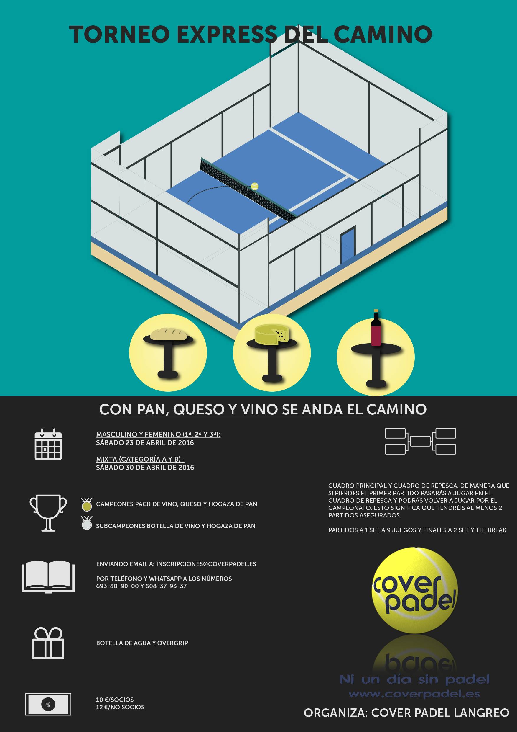 En nuestra web www.coverpadel.es (una vez publicados los cuadros no se admitirán cambios)