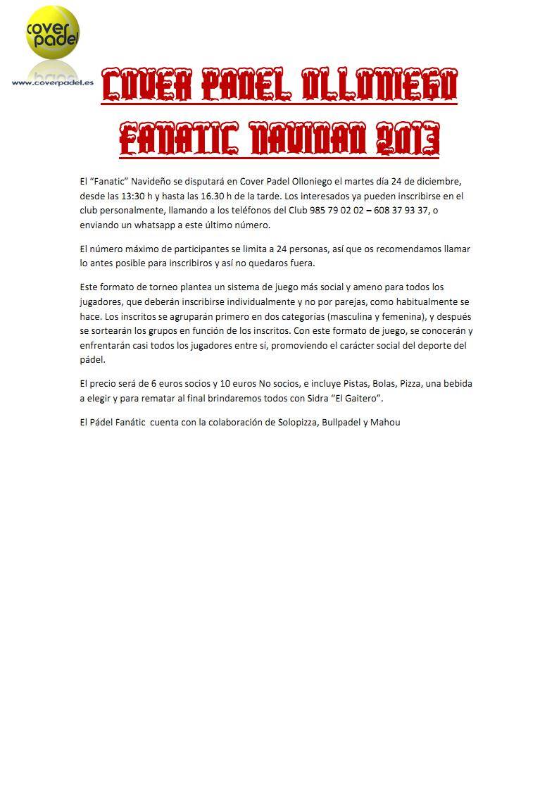 FANATIC NAVIDAD 2013 EN COVER PADEL OLLONIEGO (OVIEDO)